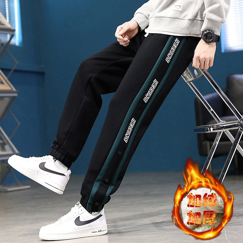 韩版新款加绒束脚运动卫裤男士秋冬2023加厚休闲裤青年纯色哈伦裤