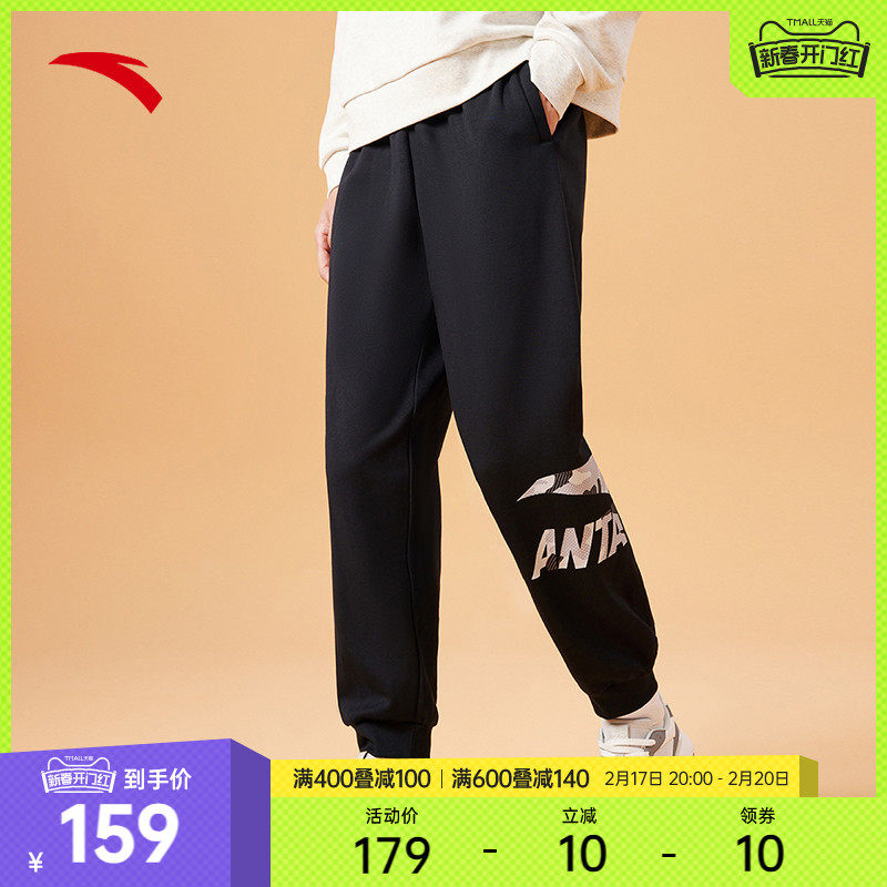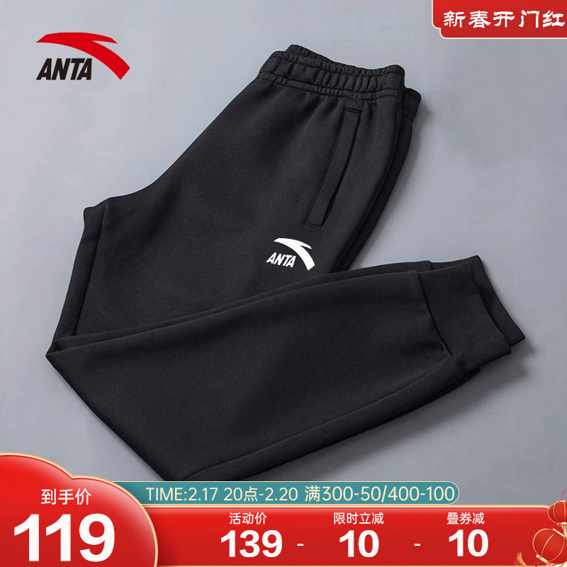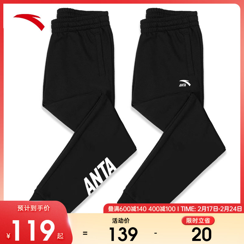 安踏加厚运动裤男官方旗舰春季黑色针织卫裤宽松休闲裤子男士长裤
