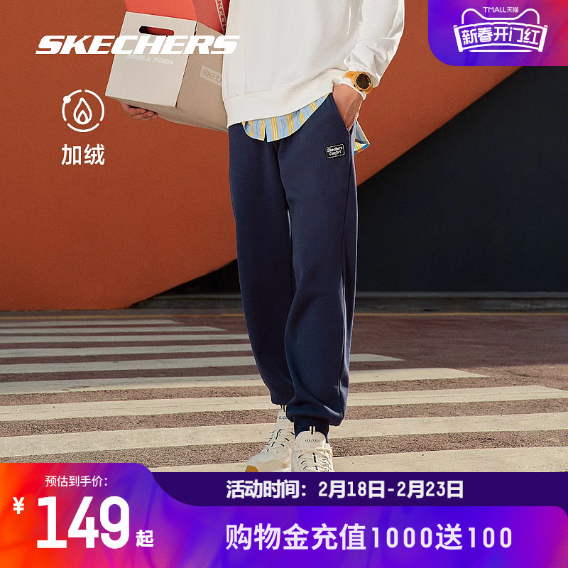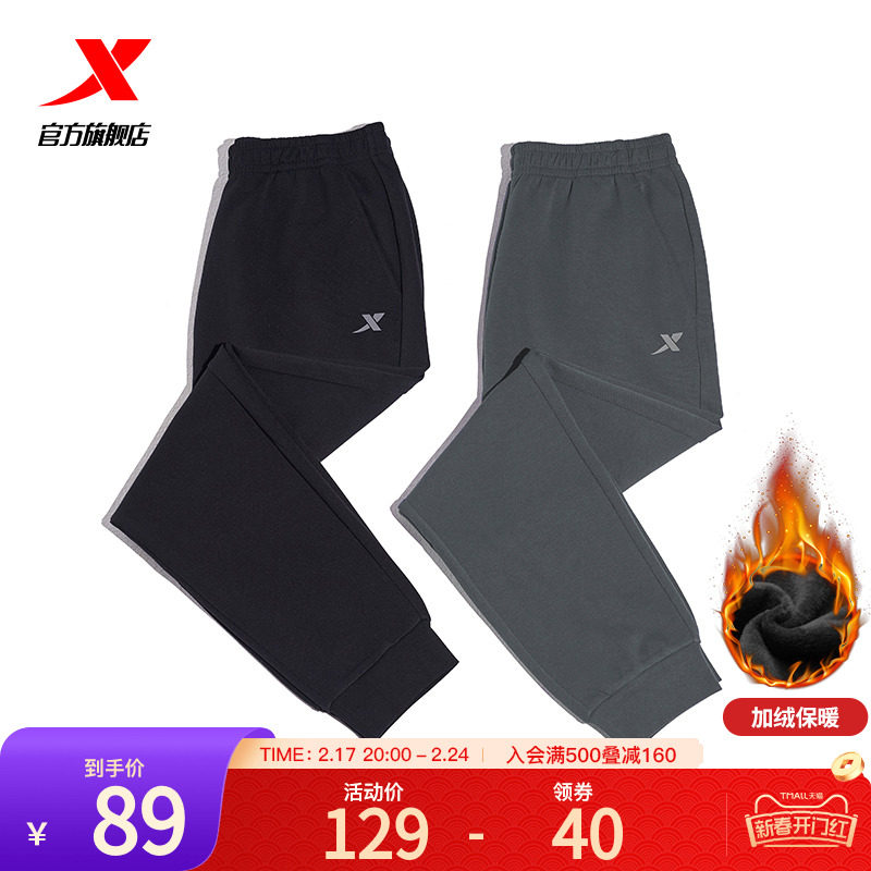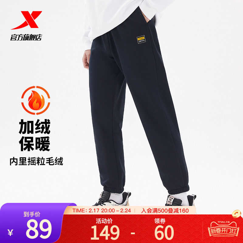 特步加绒运动裤男长裤冬季男裤冬季保暖宽松束脚收口男士休闲长裤