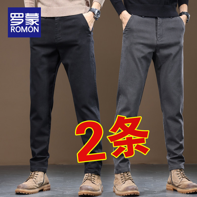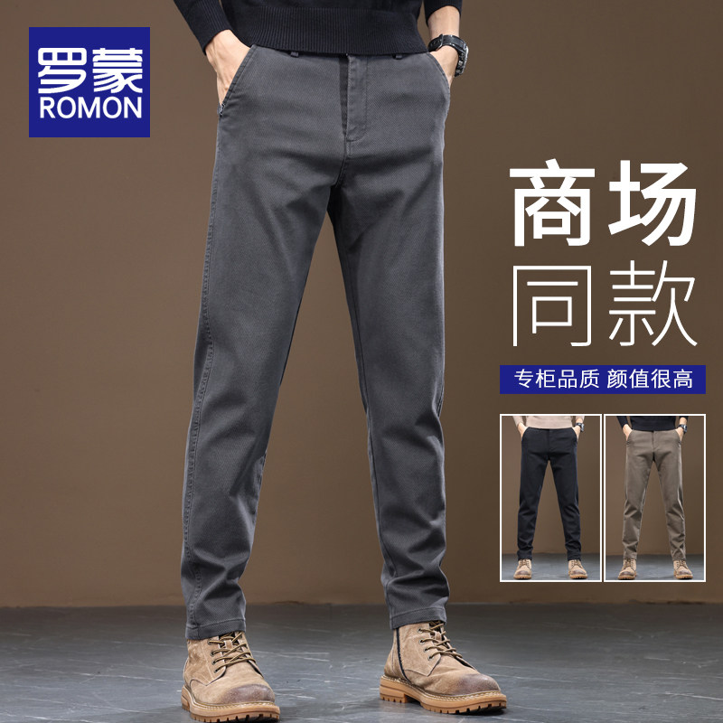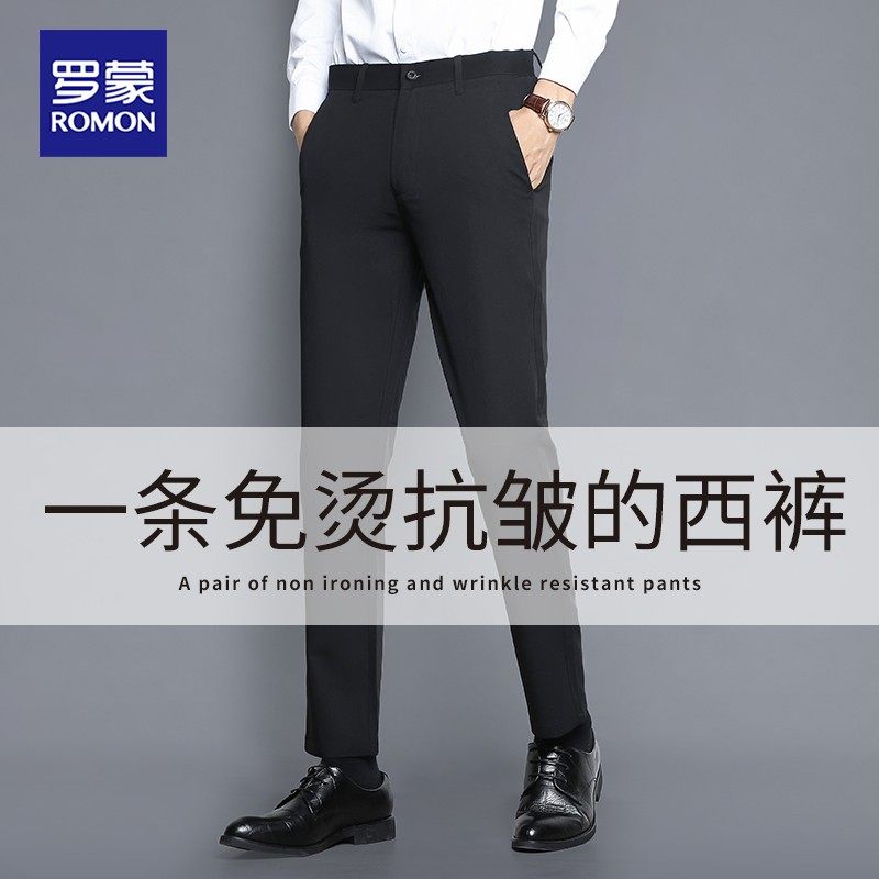 罗蒙男士修身西裤春秋款冬季直筒黑色男正装裤子休闲加绒西装裤