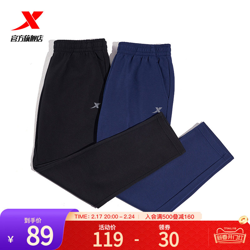 特步男运动裤秋冬男裤加绒针织卫裤宽松男装直筒裤子男士休闲长裤