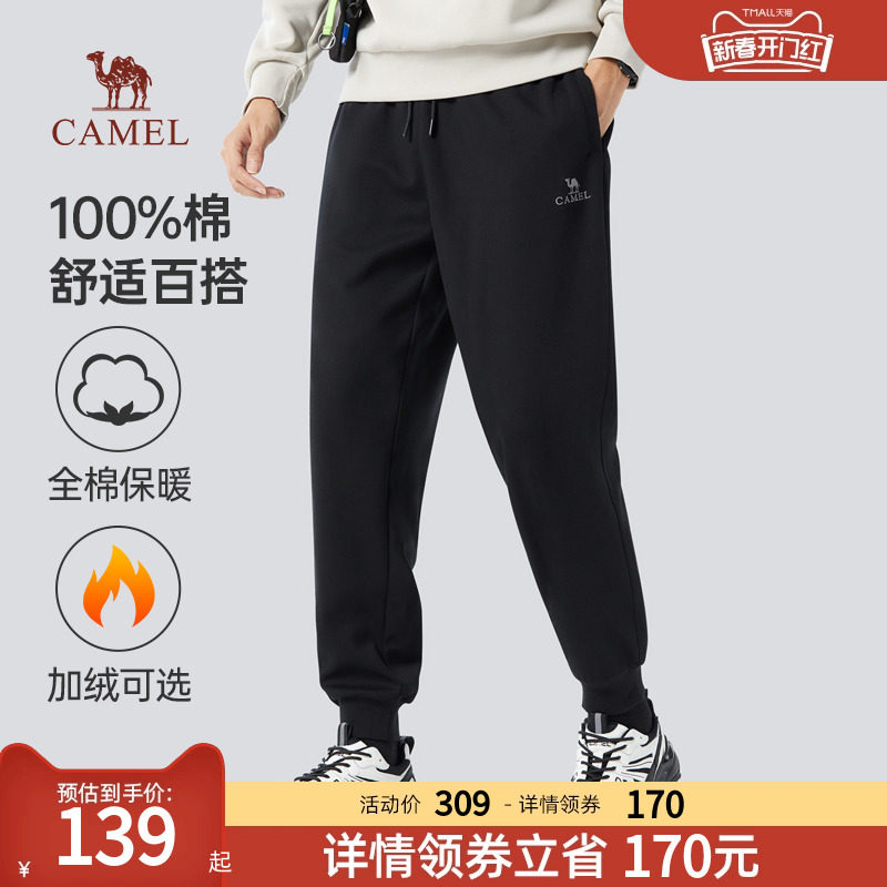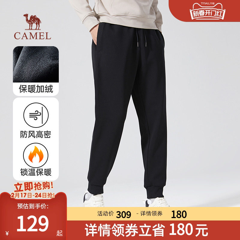 骆驼男装运动裤男秋冬季纯棉加绒加厚针织卫裤宽松束脚休闲长裤