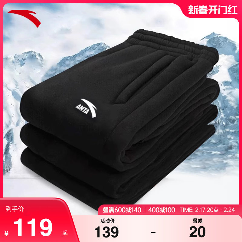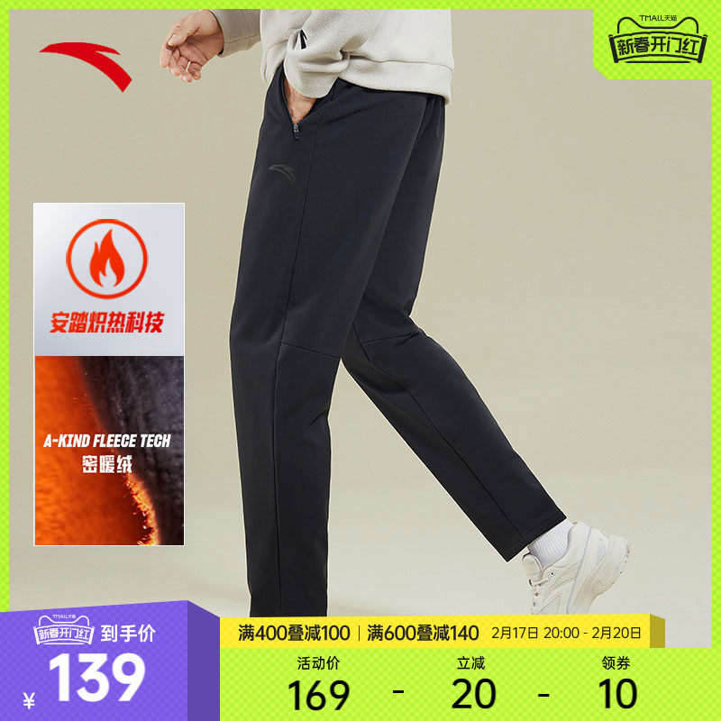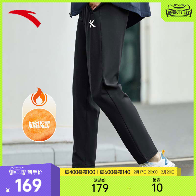 安踏厚绒长裤丨加绒男春季梭织保暖弹力跑步运动直筒裤休闲卫裤