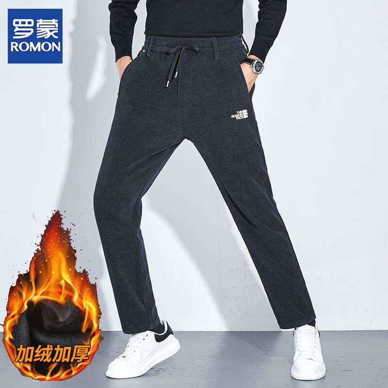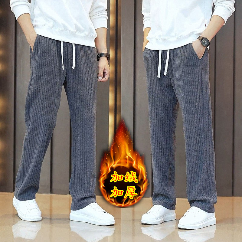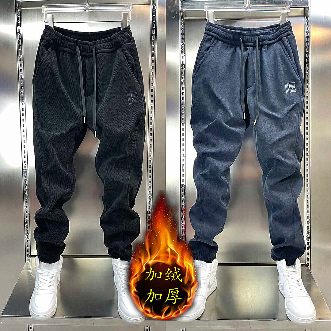 加绒加厚灯芯绒休闲裤男士运动裤冬季直筒弹力卫裤宽松保暧长裤子