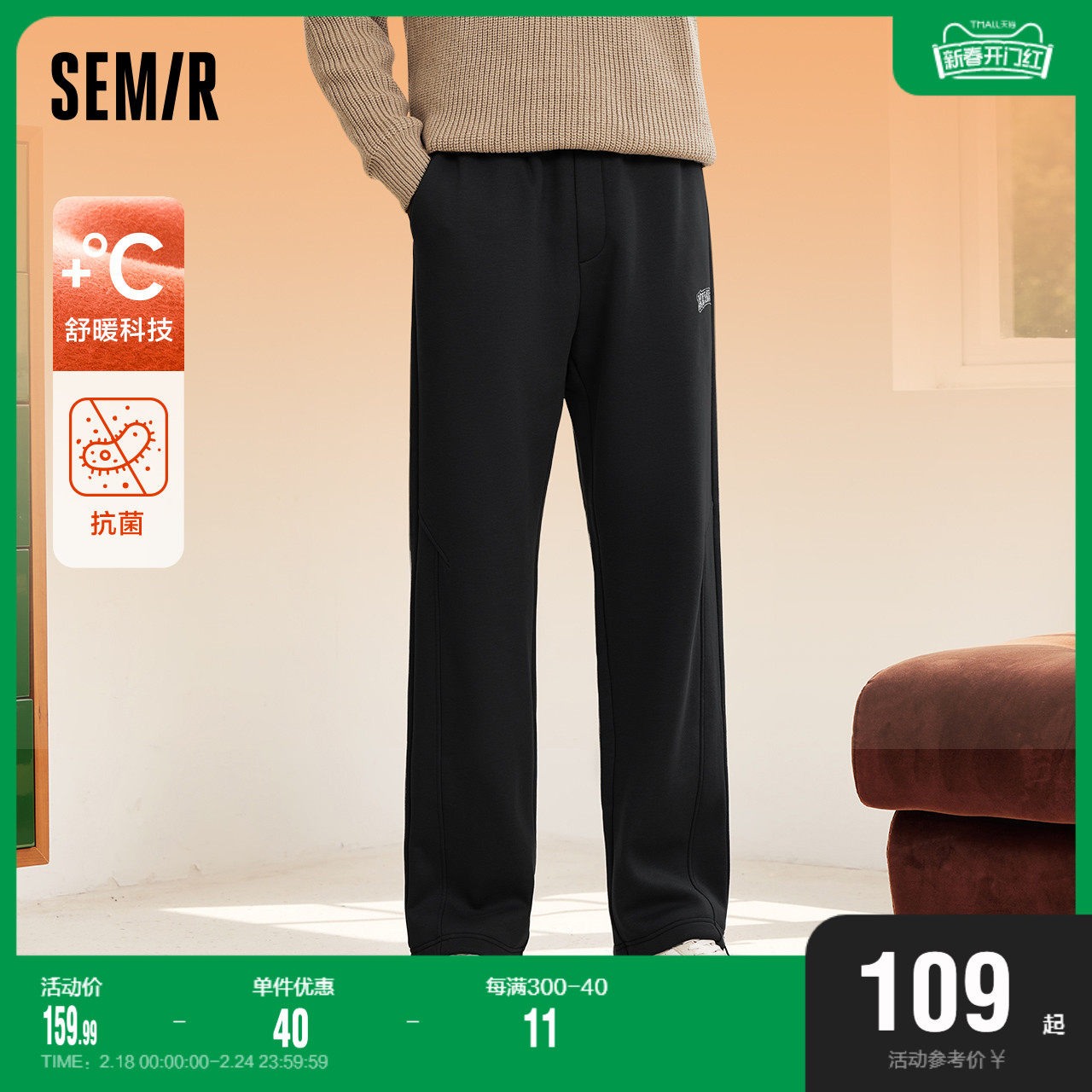 森马男休闲裤2023秋冬季保暖直筒男裤厚加绒黑色修身抗菌裤子男款
