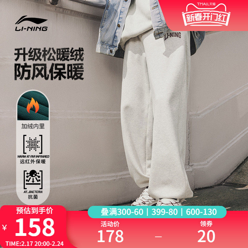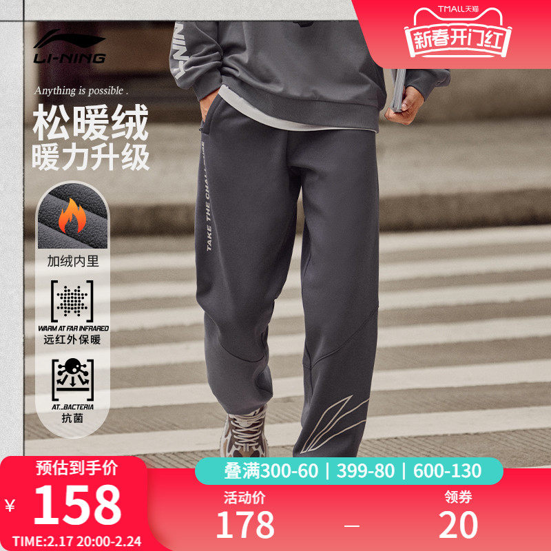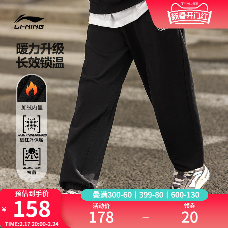 李宁远红外保暖卫裤 | 新款冬季男宽松加绒休闲裤子束脚运动长裤