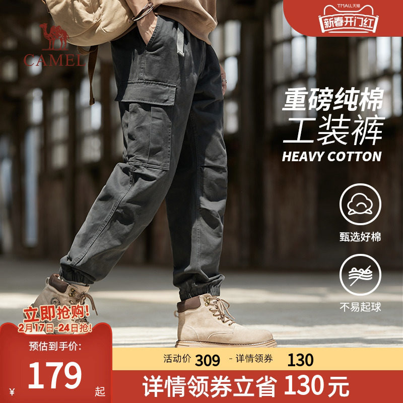 骆驼男装工装裤男2024新款春秋季宽松运动纯棉加绒束脚休闲长裤子
