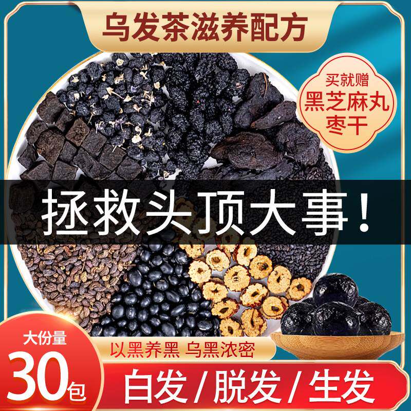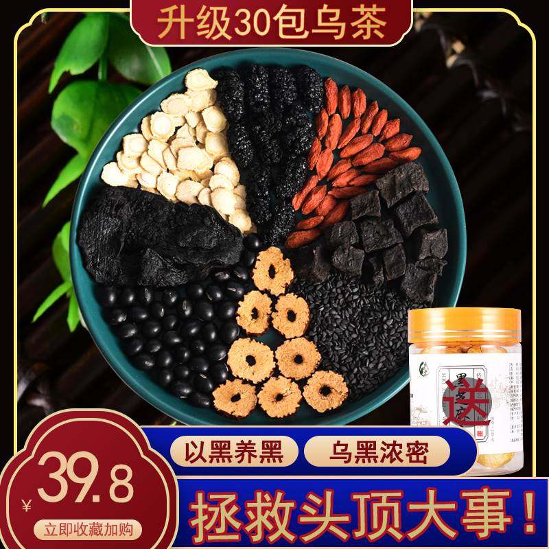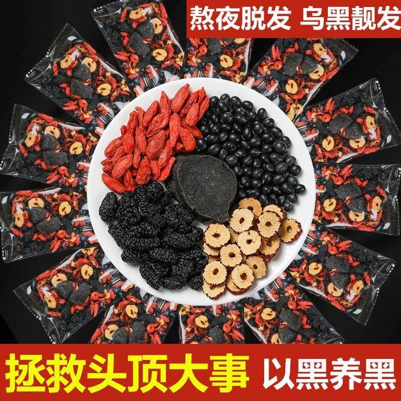 何首乌桑葚黑豆中药材养生乌发茶非白发变转黑发食疗泡水茶丸片粉