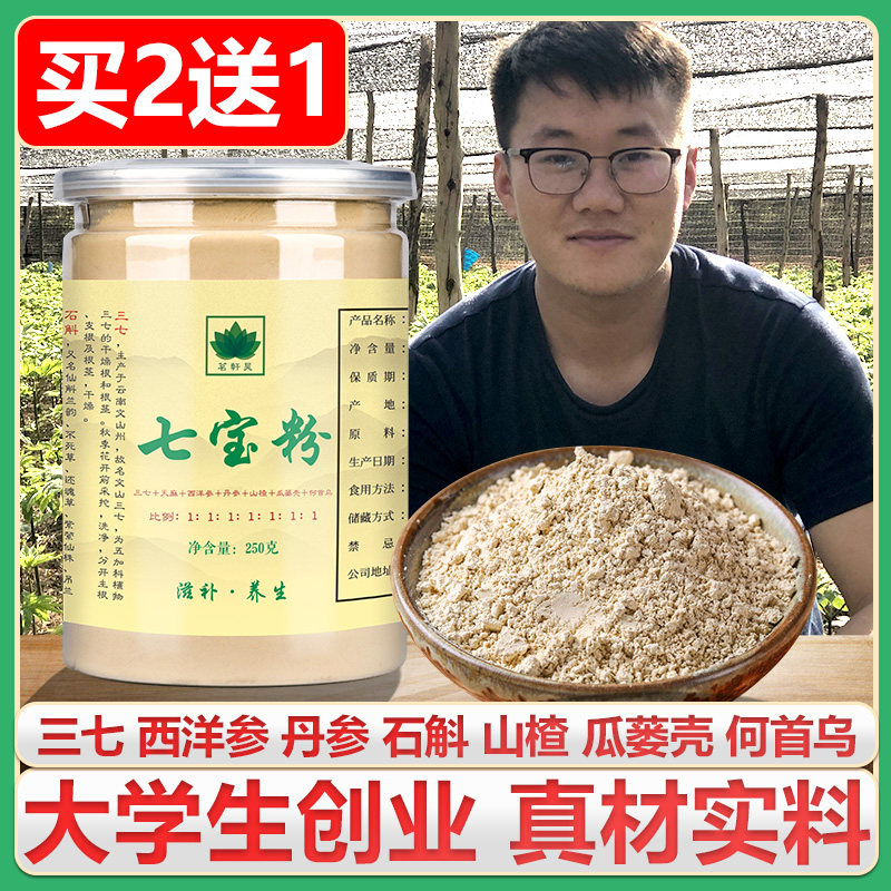 买2送1七宝粉压片文山三七西洋参丹参天麻瓜蒌壳山楂制何首乌合一