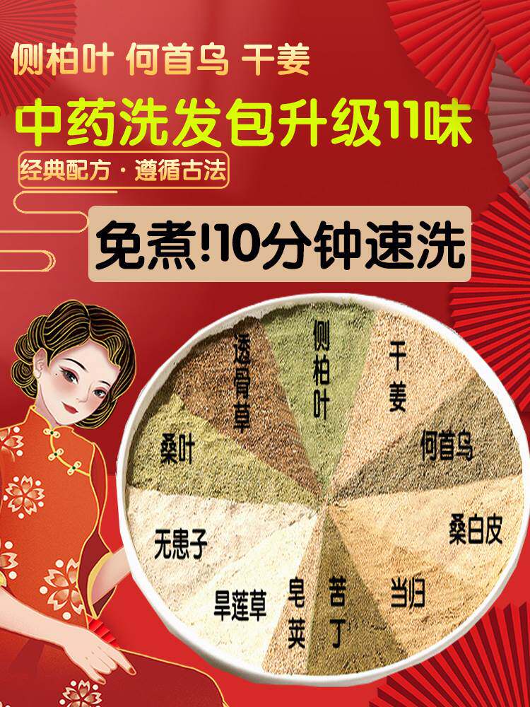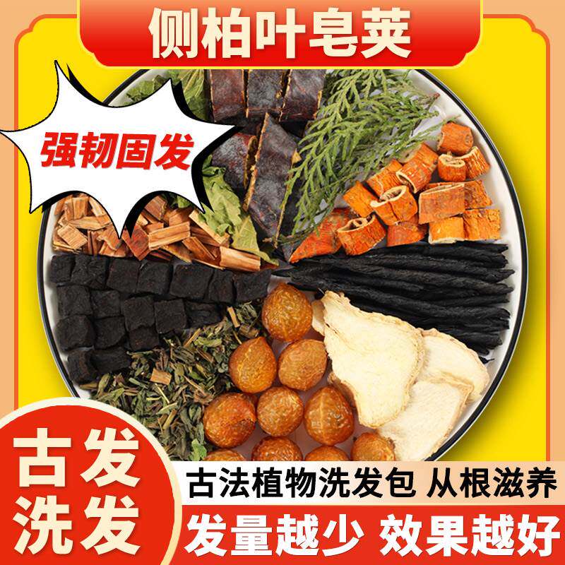 侧柏叶浮萍洗发水洗头包粉中药材加茶枯官方皂角当归制何首乌干姜