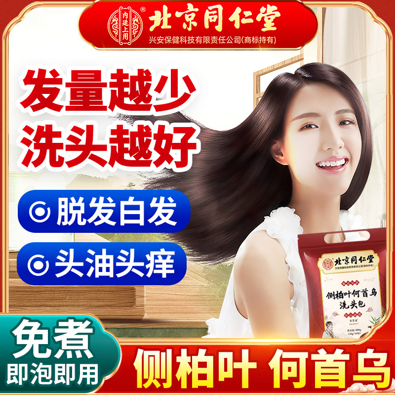 北京同仁堂侧柏叶何首乌中药材洗头包皂角中药粉泡头包非洗发水