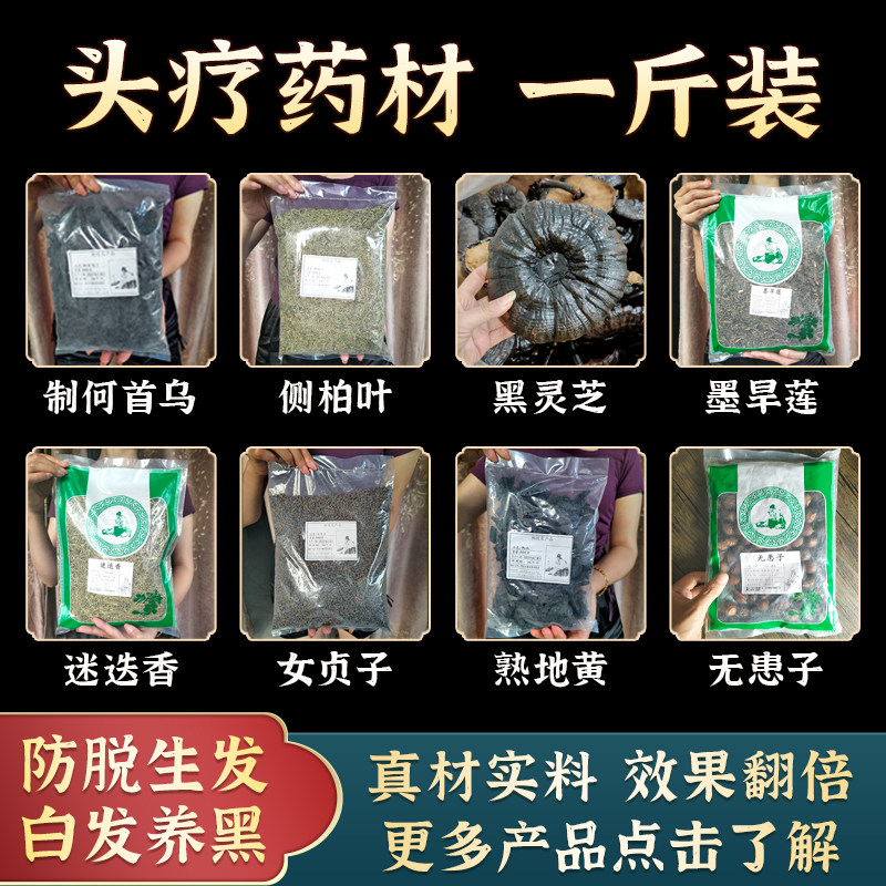 墨旱莲养发精华液头疗药包植物何首乌黑发粉洗头脱发侧柏叶洗发水