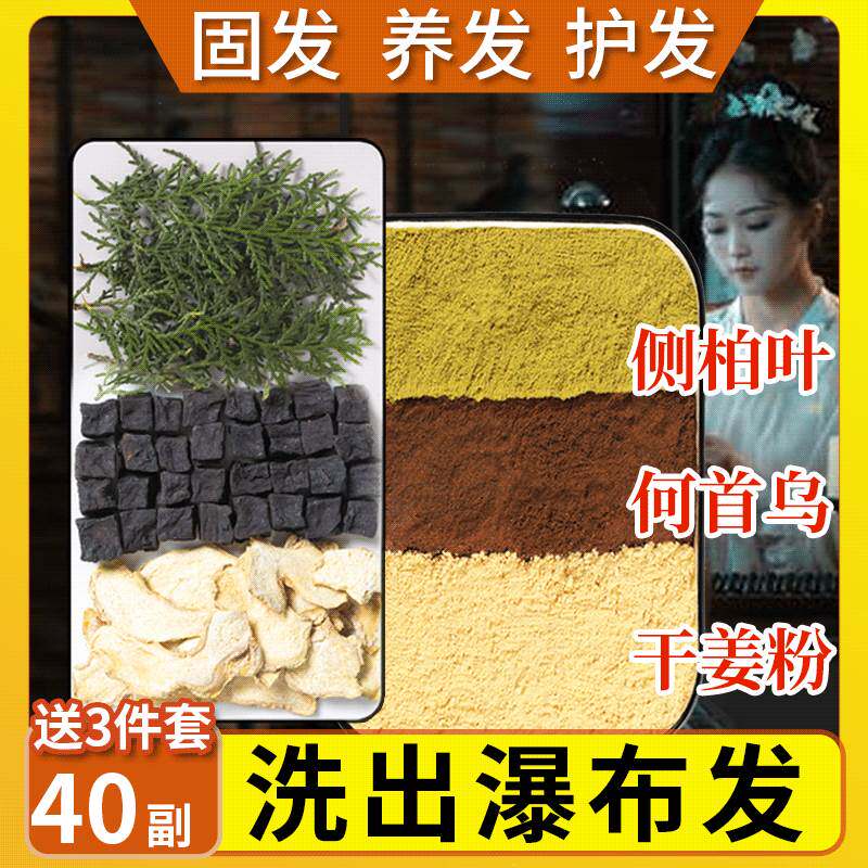 侧柏叶洗发水洗头发包生制何首乌草本侧柏叶粉皂角中药材育生姜发