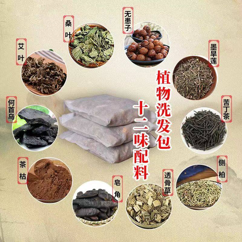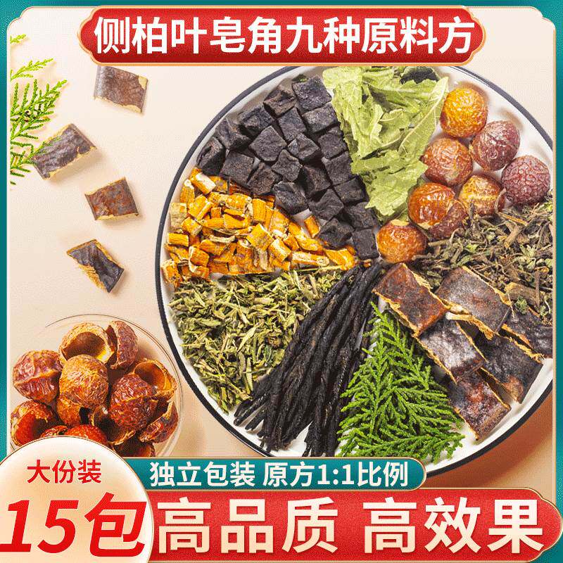 侧柏叶桑叶何首乌皂角茶麸粉中药包水白发增密发洗头养护发去油屑