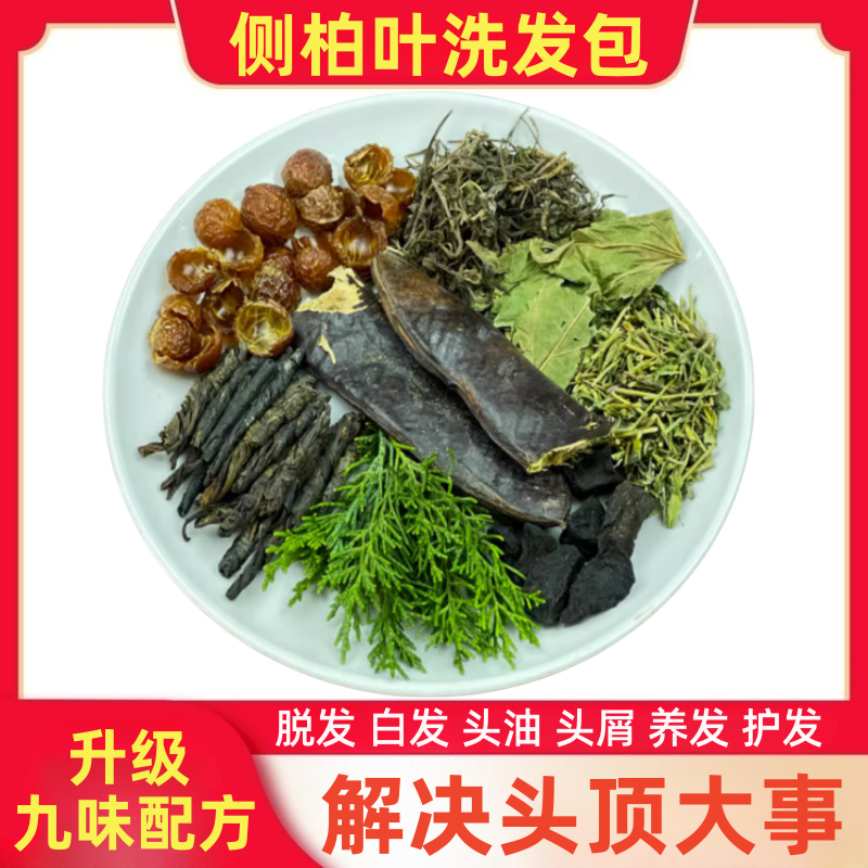 侧柏叶皂角药材洗头包何首乌无患子生姜茶枯粉洗发水产后中草药包
