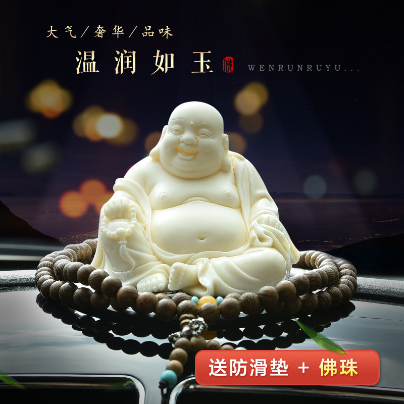 高档弥勒佛招财保平安汽车摆件车内中控台车载笑佛佛像饰品高端男