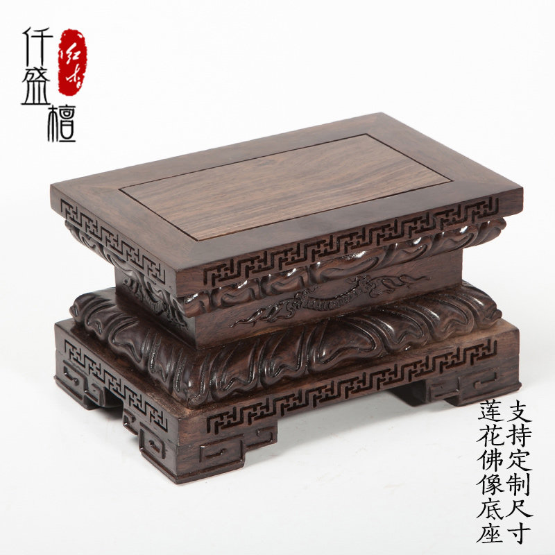 实木雕刻花瓶底座长方形佛像鱼缸石头底座花盆工艺品摆件底座红木