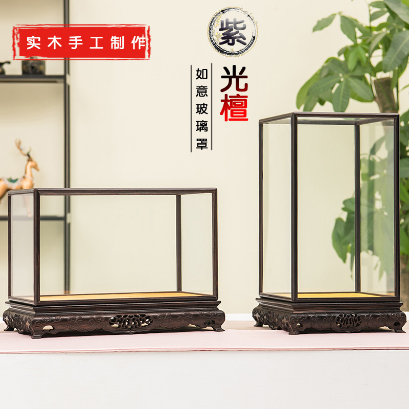 红木玻璃罩观音佛像展示盒古董文玩工艺品如意防尘罩子紫光檀定制
