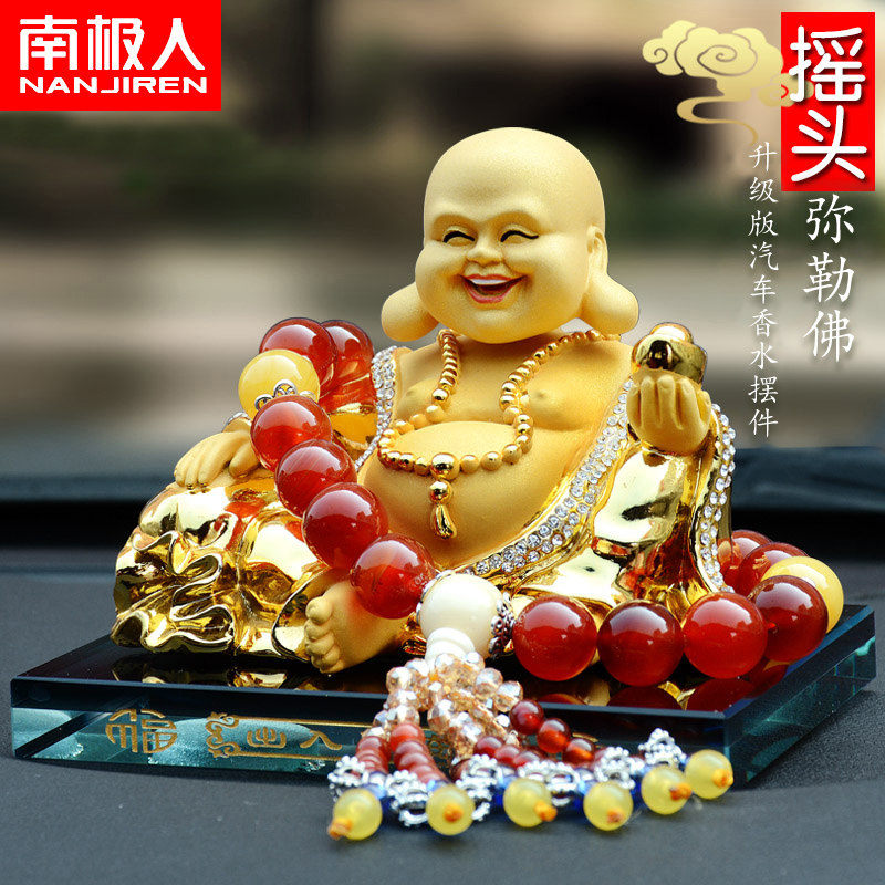 汽车摆件车载香水座摇头弥勒佛像创意中控台车上车内装饰用品大全