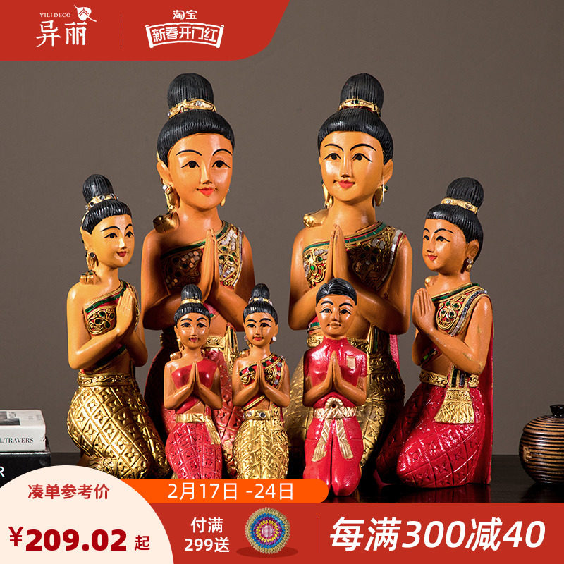 泰国餐厅玄关木雕迎宾人偶摆件东南亚风格装饰品泰式风情佛像摆设