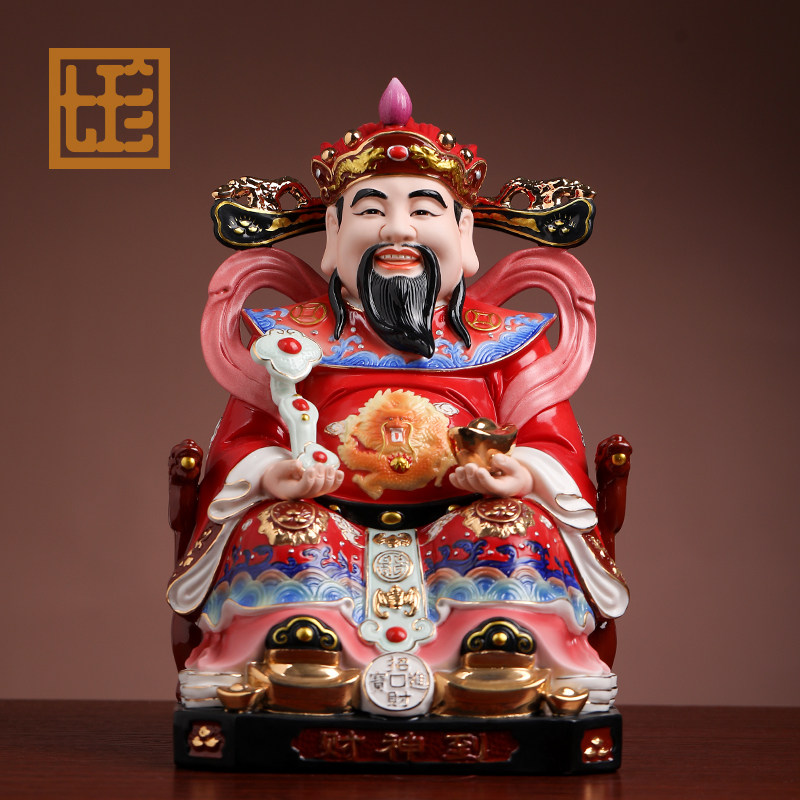 旗红陶瓷财神爷摆件文财神佛像招财神像家用店铺开业送礼品招财
