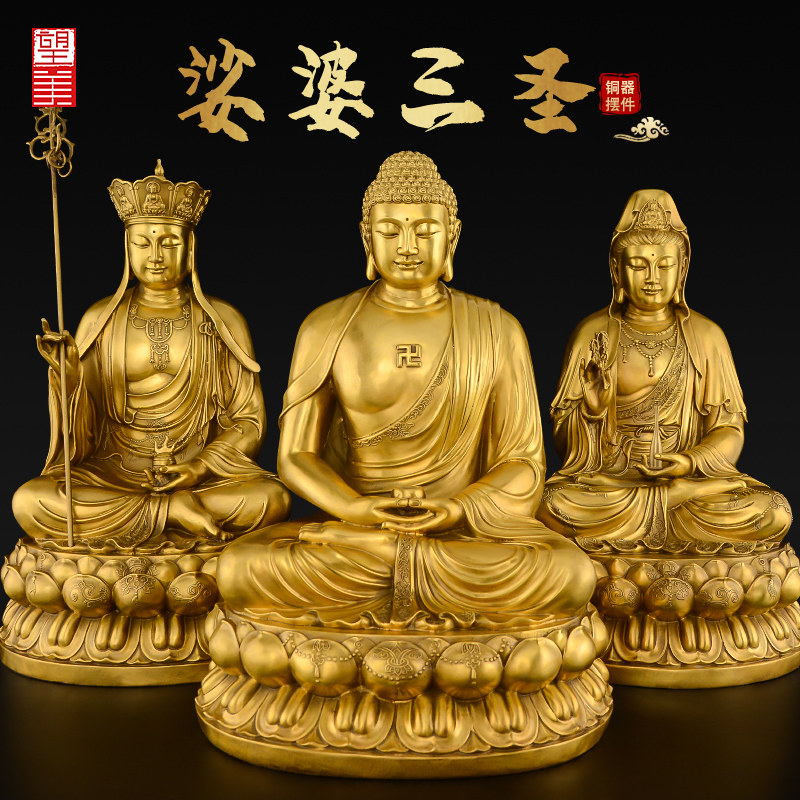 三宝佛三方佛菩萨画像 药师佛阿弥陀佛释迦牟尼佛如来佛祖佛像画