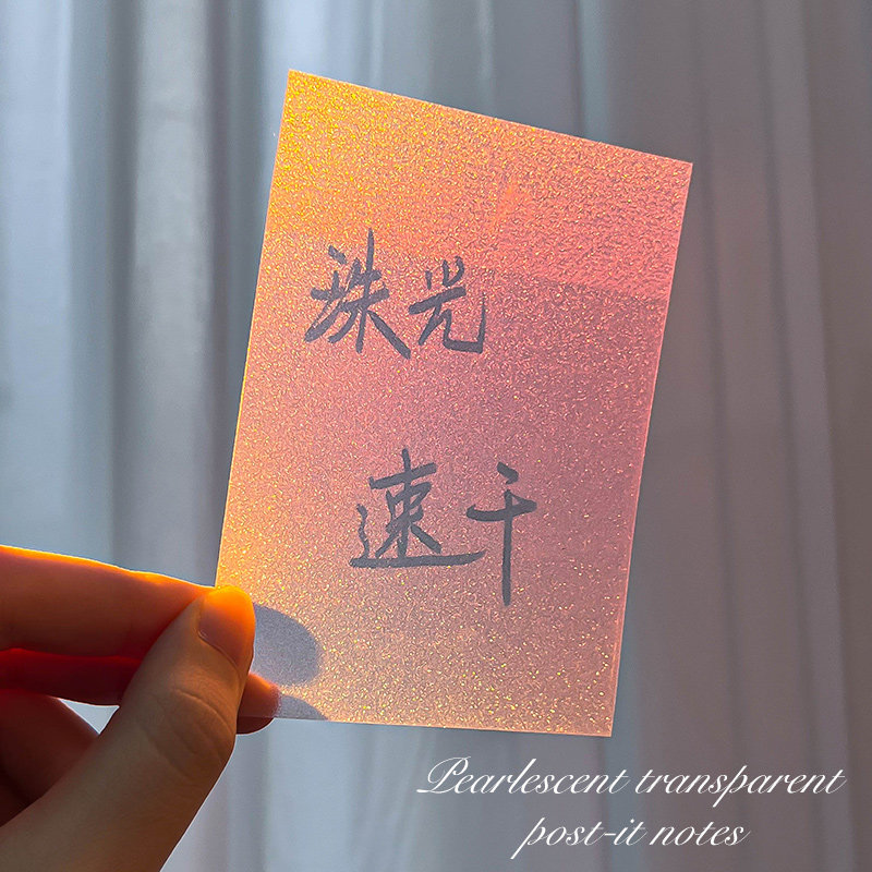 珠光透明便利贴学生用便签纸本粘性强可写速干初中生专用标记笔记考研防水记事标签高颜值办公用可撕便签贴纸