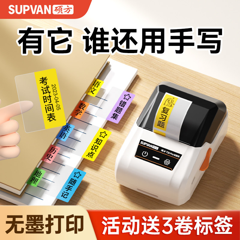 硕方索引贴打印机文件夹档案盒透明彩色分类贴纸文件夹分页标签书本目录指示贴手账便签笔记本书签防水便利贴