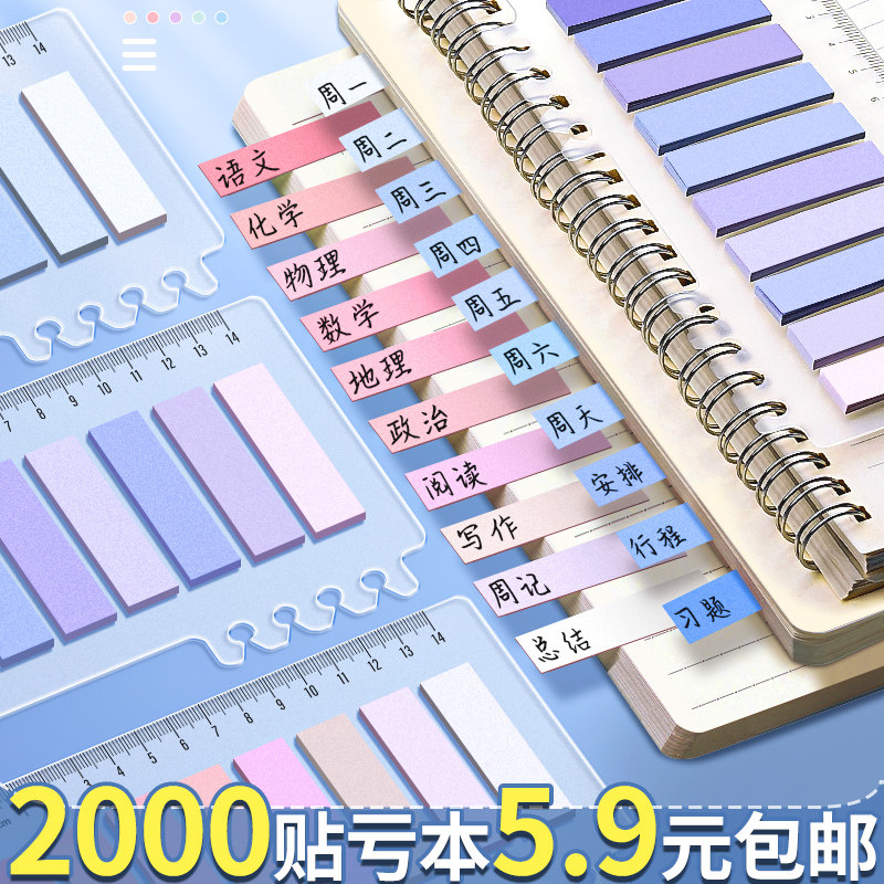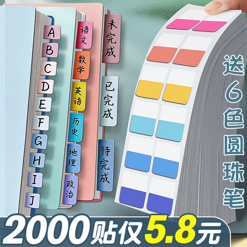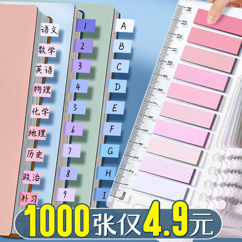 索引贴标签贴便签贴标签纸便签活页本便利贴纸学生用彩色高颜值粘性强荧光书签记号标记贴透明指示分类活页本