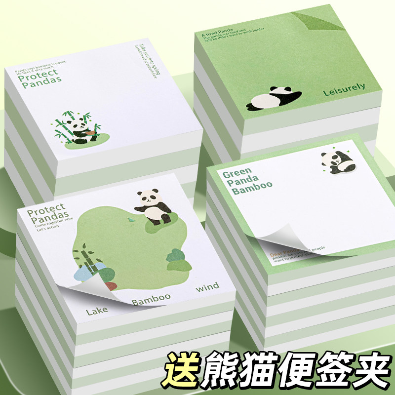 熊猫文创 便签本可撕无粘性彩色手账素材纸高颜值可爱便签纸可写创意韩系卡通便条纸学生用记事便利本小本子