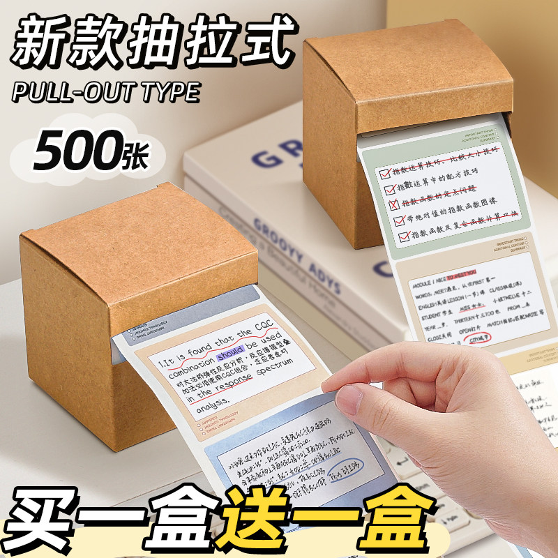 抽拉式便利贴初中生专用便签纸标记错题便签贴纸高颜值办公用好物粘性强笔记大号标签贴留言记事全粘式便利签