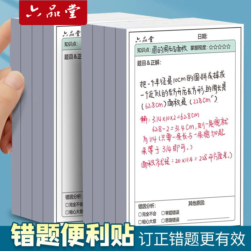 六品堂错题便利贴便签纸自粘小学生初中生专用数学语文英语试卷错题订正贴课堂笔记修改贴改错贴纸神器作业