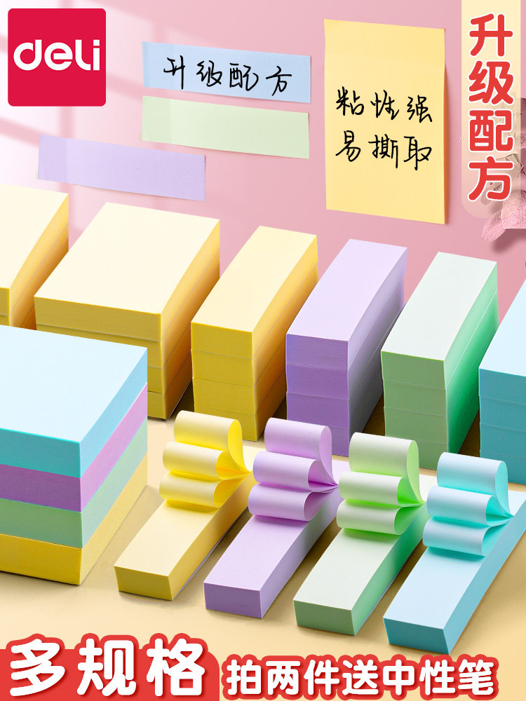 【升级超强粘度】得力便利贴学生用n次贴自粘便签本彩色小条便签贴纸外卖留言办公记事贴便签纸便签本百事贴