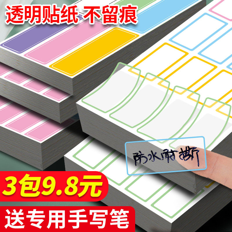 彩色便签贴纸不干胶标签贴分类透明标签口取纸手写自粘姓名贴可爱防水写名字标记贴小尺寸可移除易撕取撕不烂