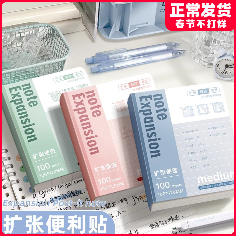 扩张便利贴可折叠扩张贴学生用考研有粘性便签贴纸扩展贴笔记贴补充贴便签纸简约ins风拓展贴N次贴