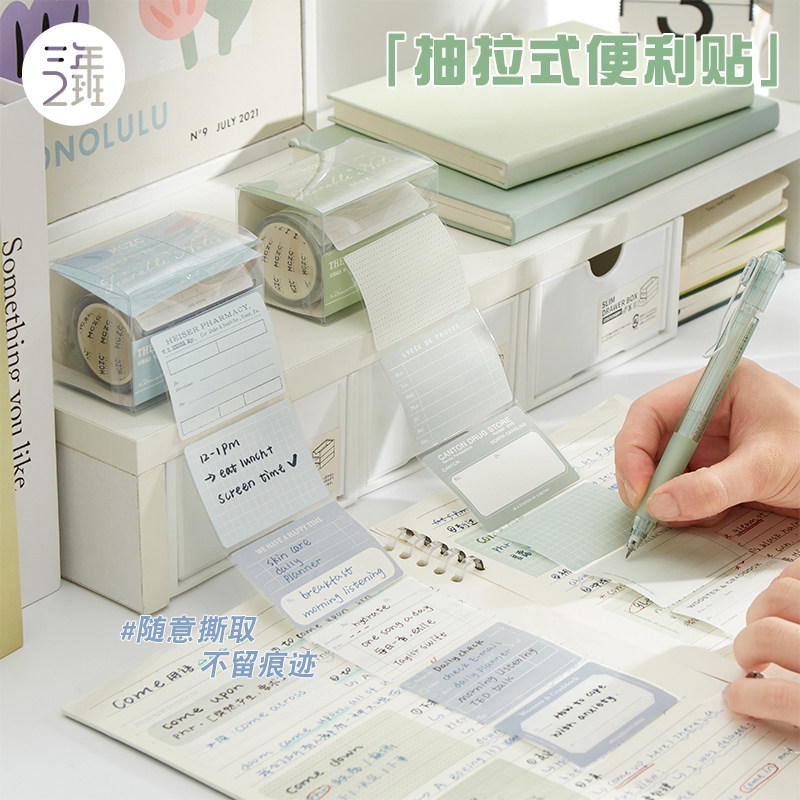 三年二班 抽拉式500贴便利贴学生用错题便签纸初中生专用办公室必备好物学习用品文具大全高颜值标签贴粘性强
