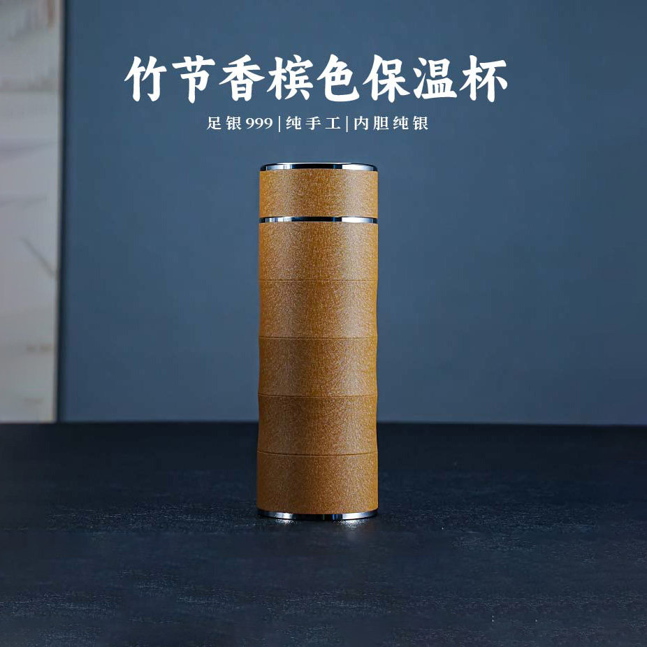 银杯子999纯银保温杯 竹节银水杯银内胆保健杯足银便携泡茶杯水杯