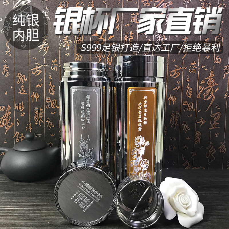 银水杯纯银内胆999银杯子足银茶杯商务保温保健杯创意定制礼品杯