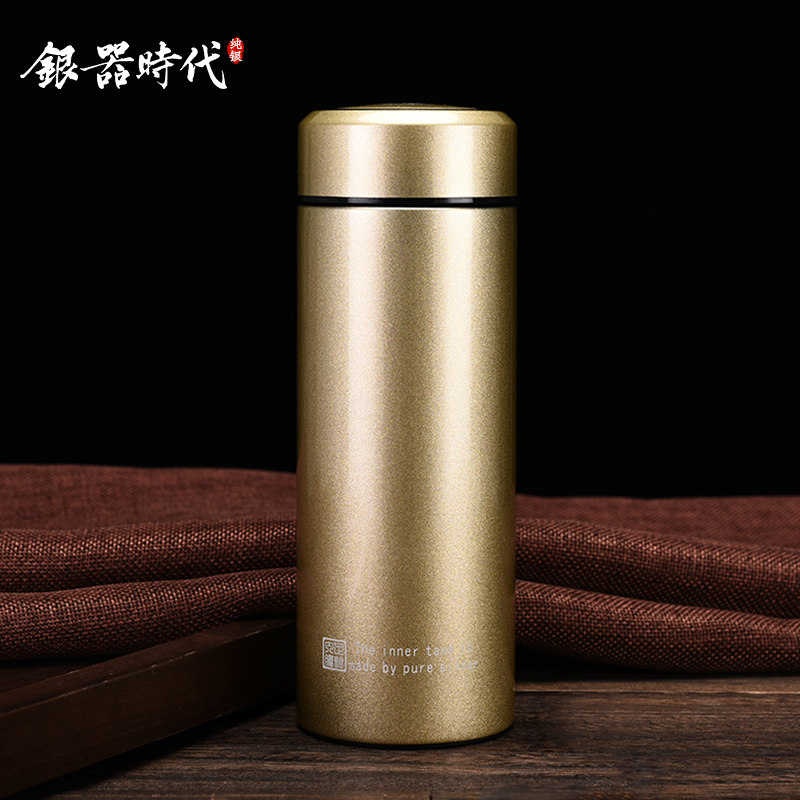 纯银保温杯男正品s999银水杯高档足银内胆杯子保健茶水分离泡茶杯