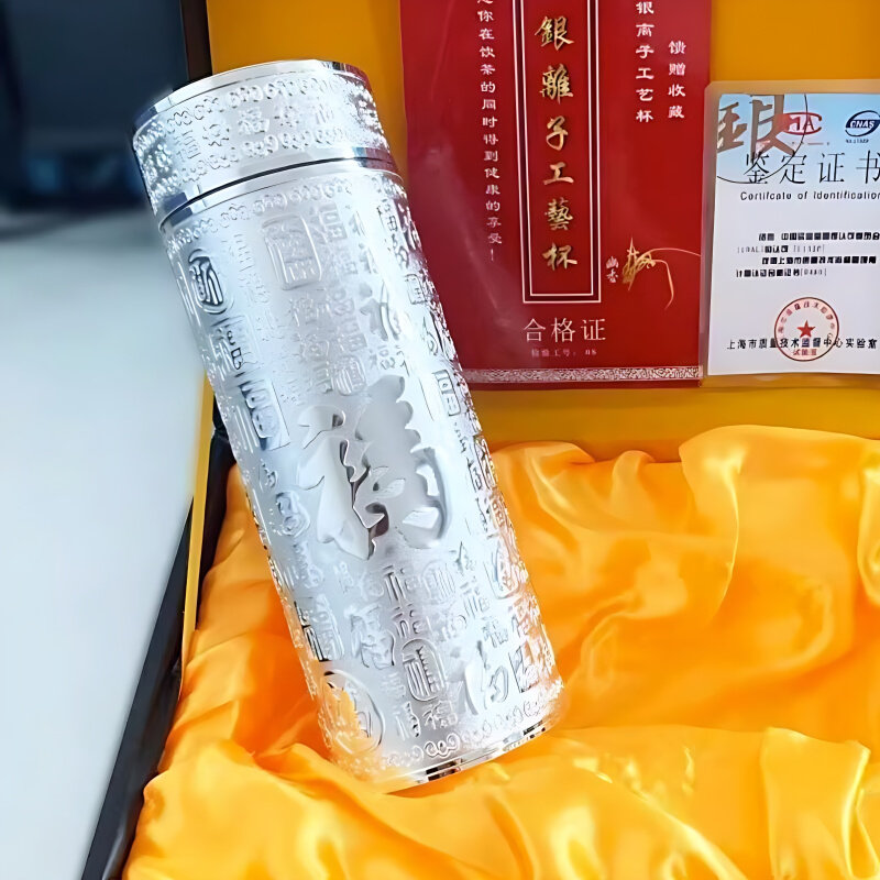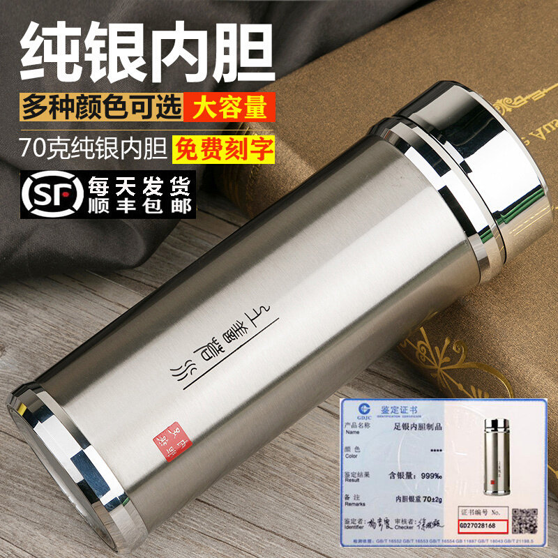 男士保健纯银内胆保温杯高档999银水杯内胆泡茶杯子定制礼盒正品