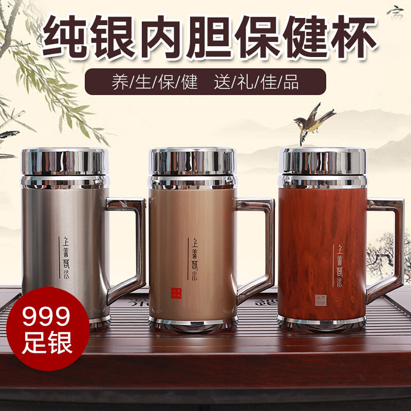s999高档纯银内胆保健保温杯 男女士带把手大容量老板杯办公杯子