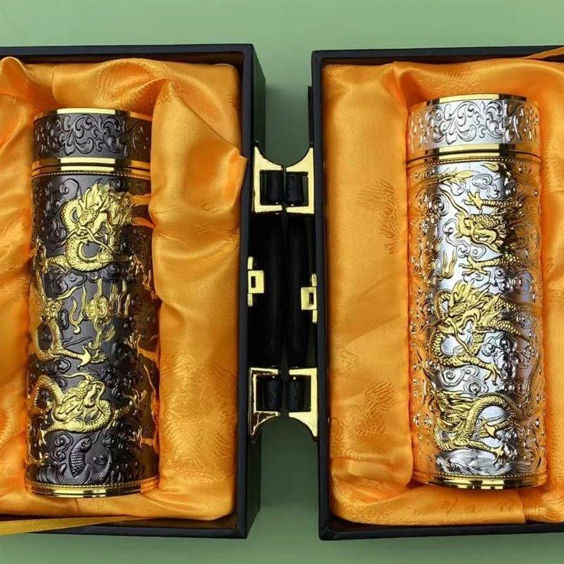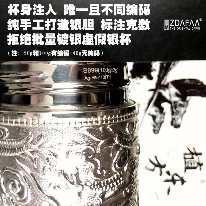 九龙浮雕纯银水杯s999纯银内胆礼品杯高档男士养生办公保健银杯子