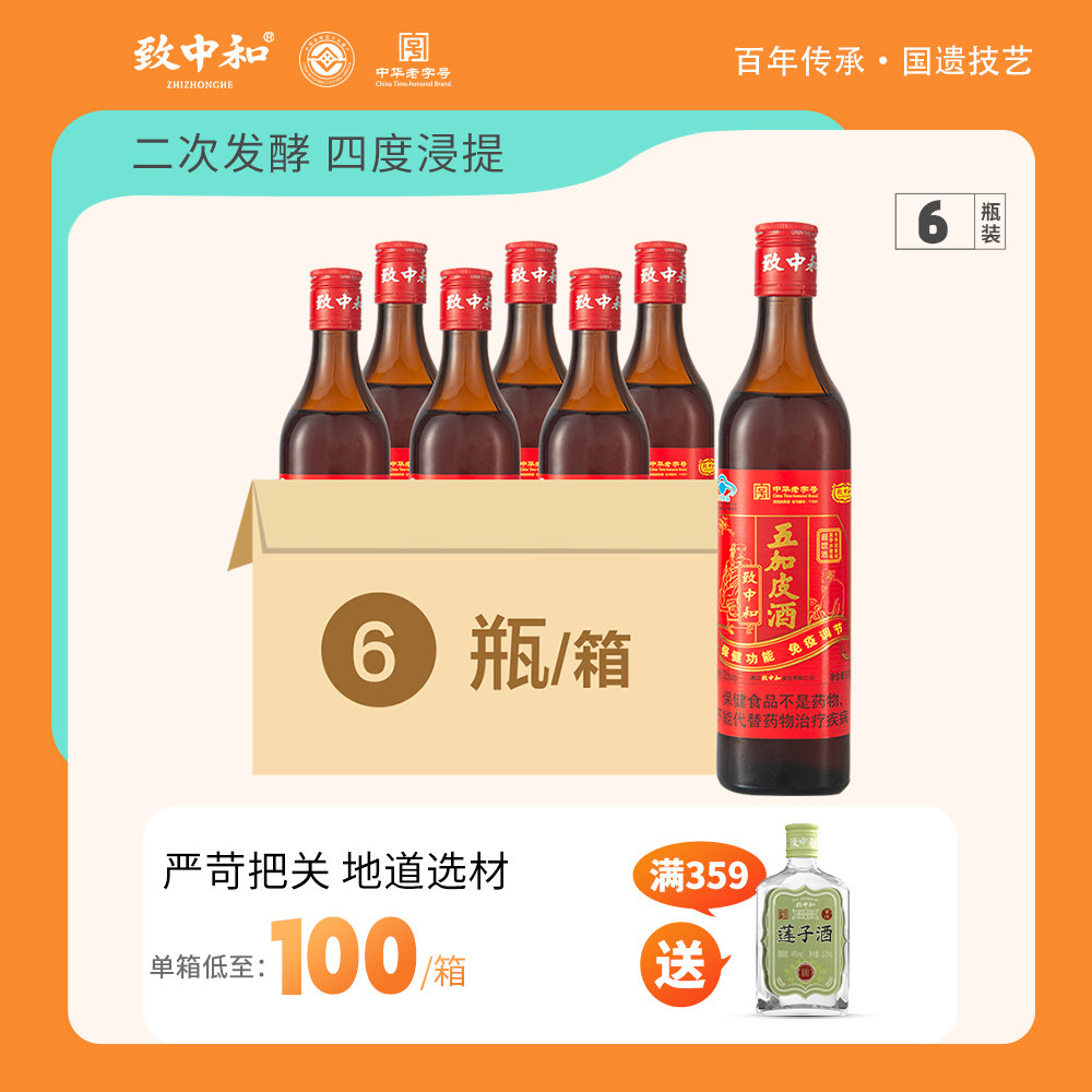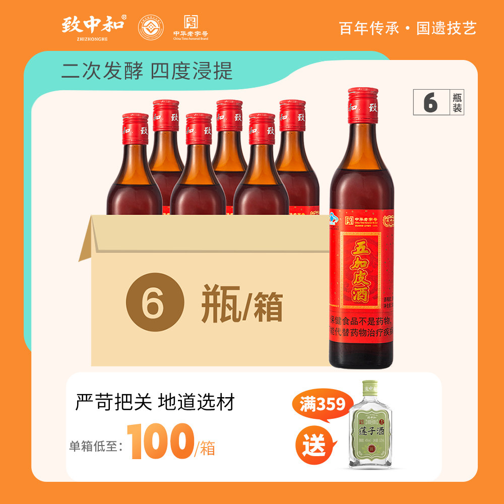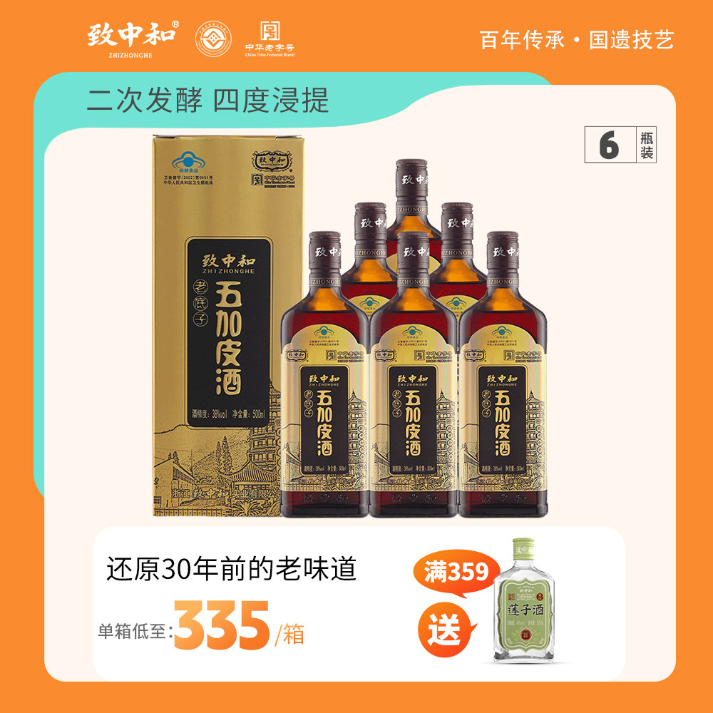 致中和牌老底子五加皮酒500ml*6瓶男女士养生保健酒礼盒装送父母