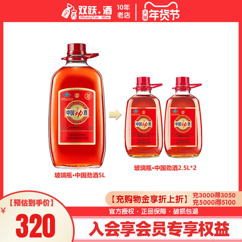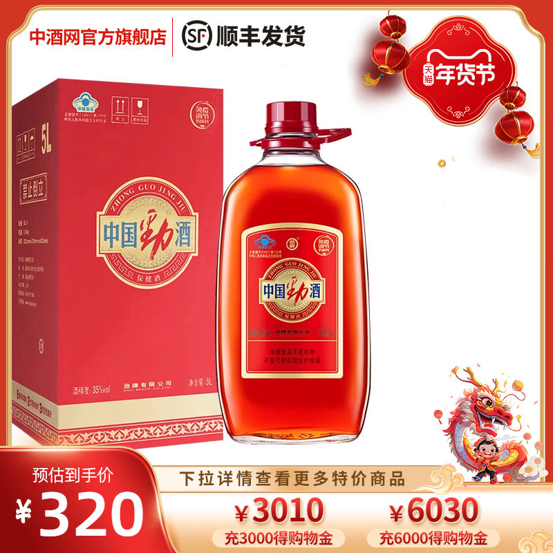 中酒 中国劲酒35度5L(2.5L*2瓶) 保健酒家庭分享装