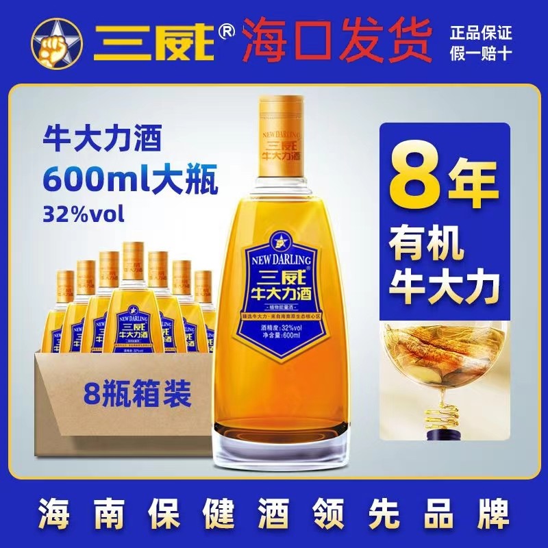 海南正品三威牛大力酒32度600ml *8瓶整箱装能量保健酒养生酒包邮