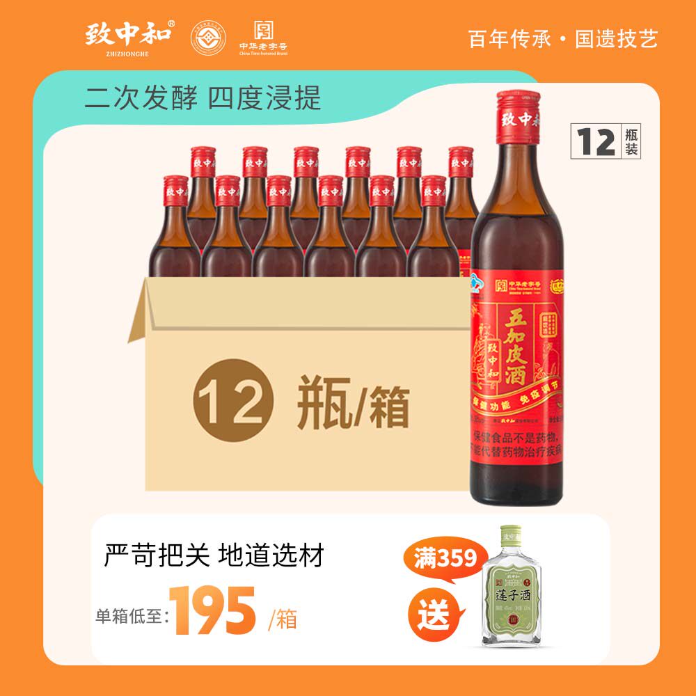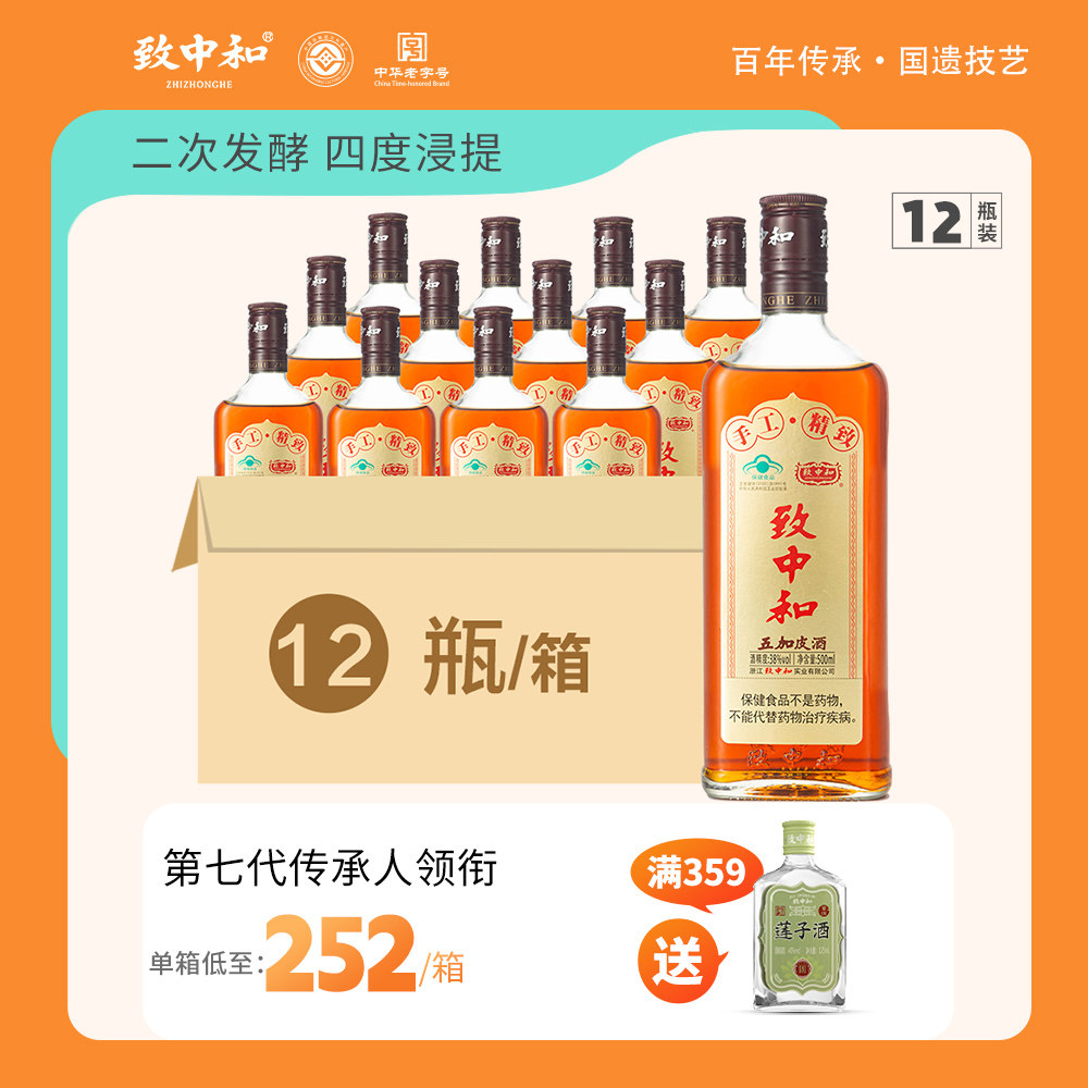 整箱致中和五加皮酒38度家饮500ml*12瓶保健养生地道药材自饮养生