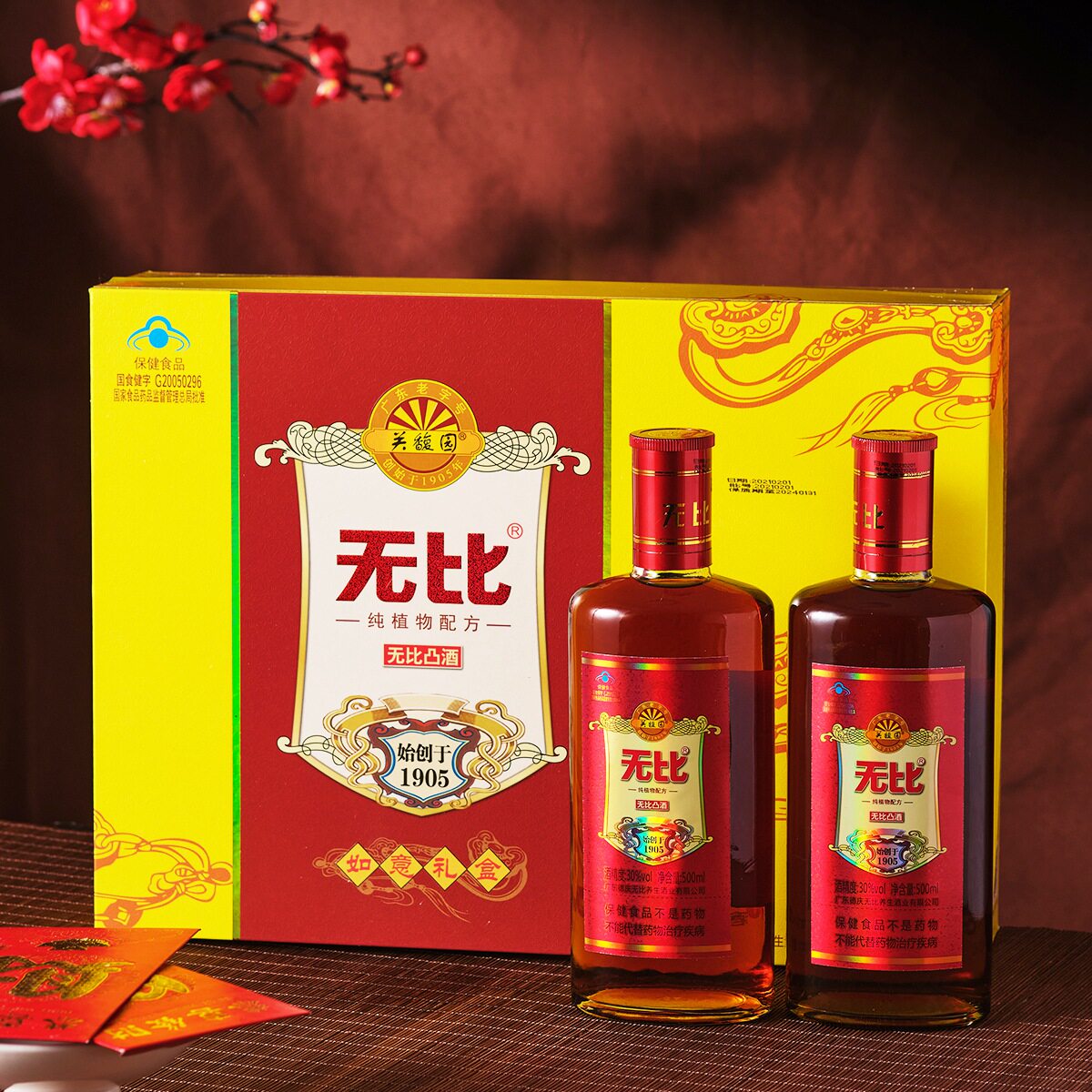 无比凸保健酒如意礼盒30度500ml*2瓶养生酒礼盒装礼品送父母