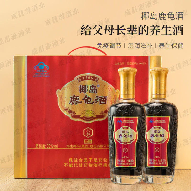 正宗海南椰岛鹿龟酒500ml*2瓶人和礼盒装养身保健补酒33度送礼酒