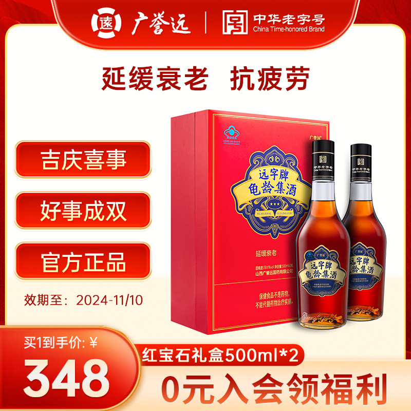 广誉远龟龄集酒官方正品红宝石礼盒500ml*2瓶保健酒送礼