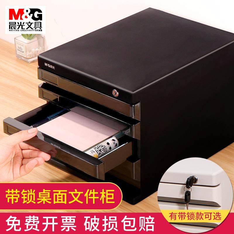 晨光文件柜资料柜抽屉式文件收纳盒架办公室桌面档案柜保密带锁可移动多层大容量资料柜A4文件框办公用多功能